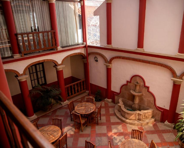 En cada rincón del hotel se respira cultura y arte, la decoración interior es elegante y exquisita, combinando a la perfección tradición y vanguardia. Desde pinturas de estilo barroco mestizo, bellas esculturas religiosas, grandes espejos con marcos enchapados en plata extraída del legendario cerro rico de Potosí, además de muebles antiguos restaurados por talentosos artistas, brindan de esta manera a todo visitante la opción de vivir un recuerdo que ofrecen características de época en todos sus detalles.